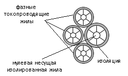 Провод самонесущий с алюминиевыми жилами, с изоляцией из светостабилизированного самозатухающего сшитого полиэтилена (ПЭ), с нулевой несущей жилой из алюминиевого сплава, изолированной светостабилизированным самозатухающим сшитым ПЭ.